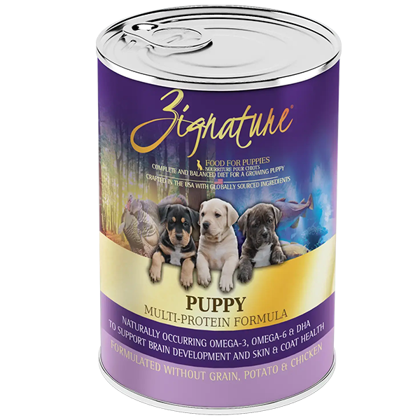 Zignature Canned Puppy Formula is made with the tastiest blend of poultry and fish to give your protein loving pup all the flavors they crave! This formula contains at least 78% moisture, is made with high-quality meats as the first ingredients (turkey, pork, & ocean whitefish), and features nutritious ingredients like peas and chickpeas to round out your furry friends well-balanced and delicious diet.