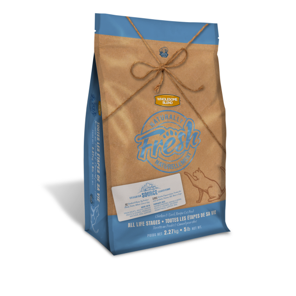 Canadian Brand. Wholesome Blend Naturally FRESH - Chicken & Duck ALL LIFE STAGE is formulated for your cat through all life stages. They use quality ingredients such as Canadian low glycemic navy beans, nutritious ancient grains and non-rendered, 100% fresh Ontario Chicken & Duck. Selected fruits & veggies provide a source of Phytonutrients. A unique blend of pre & probiotics enhances digestibility. Added Sodium Tripolyphosphate provides oral support. Naturally FRESH uses NO wheat, potato, corn, soy, rendered meats, by-products or artificial preservatives.