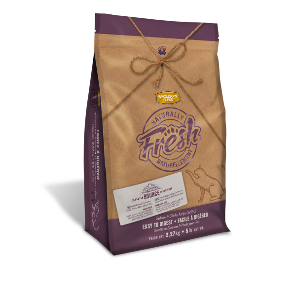 Canadian Brand. Wholesome Blend NATURALLY FRESH Salmon & Chicken EASY TO DIGEST Cat Recipe is packed full of wholesome Ingredients for adult cats. Naturally FRESH uses non-rendered, fresh Canadian Salmon & Chicken. Nutritious ancient grains, such as pearled millet, quinoa & pearled barley, remain true to their origins. Selected fruits & veggies provide a source of Phytonutrients. A unique blend of pre & probiotics enhances digestibility. Added Sodium Tripolyphosphate provides oral support. Naturally FRESH uses NO wheat, potato, corn, soy, rendered meats, by-products or artificial preservatives.