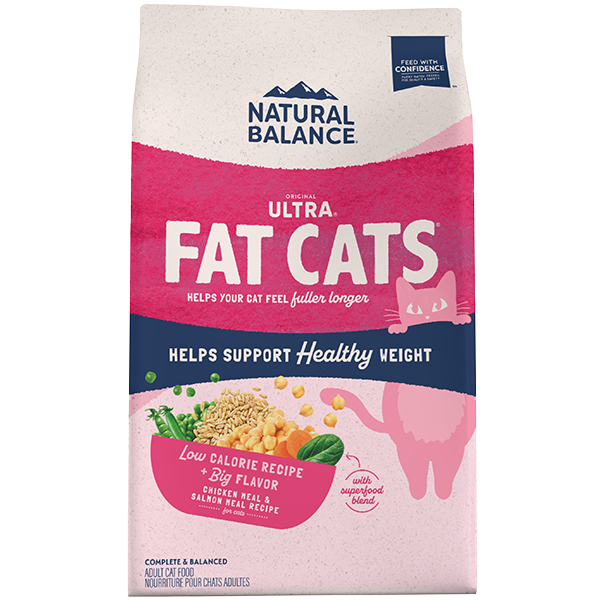 Fill your cat's bowl with a low-calorie recipe that's big on flavor! With targeted levels of L-Carnitine to help support healthy weight and a special fiber blend to help your cat feel full and satisfied. Made with wholesome grain like oat groats to help support healthy digestion. Complete and balanced for adult cats. Formulated specifically for overweight adult cats, Fat Cats has all the nutrition adult cat needs with fewer calories to help achieve and maintain a healthy weight. Scale back on calories, but not on taste!