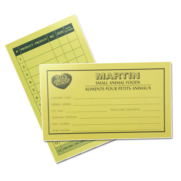 Canadian Brand. The Martin's Little Friends Frequent Buyer Card lets you keep track of your customer's purchases and reward them with a FREE bag after the purchase of twelve.