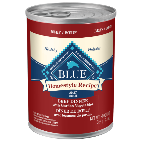 BLUE Homestyle Recipe Beef Dinner provides your dog with delicious, high-quality beef, wholesome whole grains and garden fruits and vegetables including carrots, sweet potatoes, blueberries and cranberries.