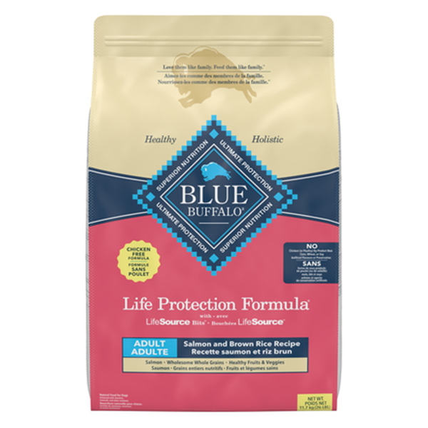 Formulated for the health and well-being of dogs, BLUE Life Protection Formula Salmon & Brown Rice Recipe is made with the finest natural ingredients enhanced with vitamins, minerals, and other nutrients. Starting with delicious salmon, this recipe features antioxidant-rich fruits and veggies, and wholesome whole grains.