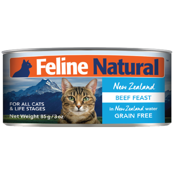 Made with grass-fed, free-range Beef, with Feline Natural Beef Feast you can be assured your cat is getting the rich and nourishing proteins and fats needed for a natural source of energy and healthy weight gain. This high in meat, low in carbohydrate food is a complete & balanced meal. Grain-Free, BPA-free, as well as free from any binders, gum, or gelling agents. The only thing added is fresh New Zealand water for added hydration.