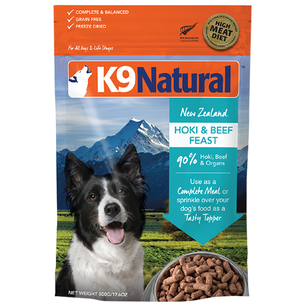 Made with sustainably caught Hoki and grass-fed, free-range Beef, this Hoki & Beef diet assists brain and eye development, and is a great diet for puppies. This high in meat, low in carbohydrate food is fully balanced and is a complete meal. It has been freeze-dried to ensure nutrients remain in the food, including the taste!