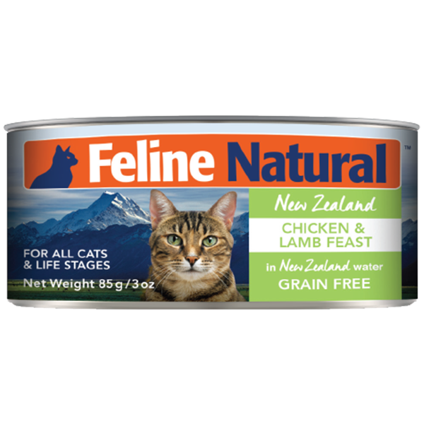 Made in New Zealand with cage-free Chicken and grass-fed, free-range Lamb, this rich-in-protein and highly palatable Feline Natural Chicken & Lamb diet is the perfect complete and balanced meal. Rich in taurine to support and maintain healthy eyes, this Chicken & Lamb feast is a great source of protein and fats. Grain-Free, BPA-free, as well as free from any binders, gum, or gelling agents. The only thing added is fresh New Zealand water for added hydration.