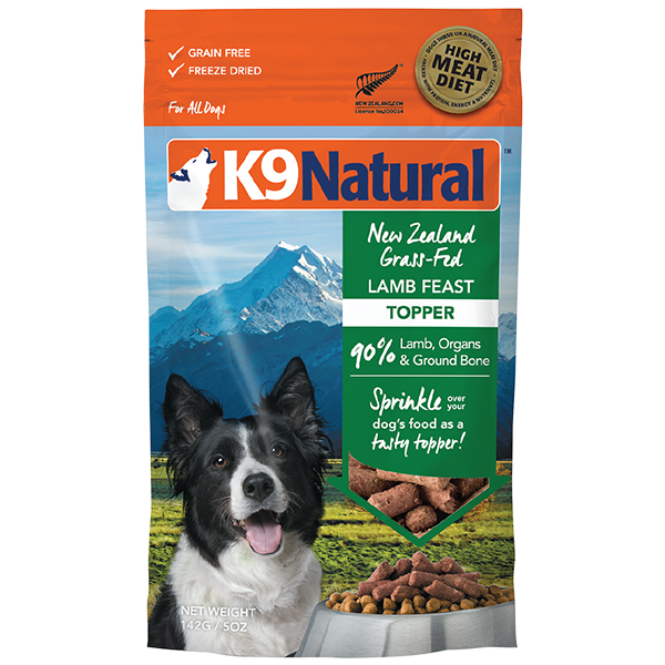 Made with grass-fed, free range Lamb, the K9 Natural Lamb Freeze-Dried Topper is made to be sprinkled over your dogs existing diet for a nutrient packed high meat boost. A great supplement that aids healthy muscle function in dogs of all ages. This complete and balanced diet is high in meat and low in carbohydrates. This Grain-free food is freeze-dried, ensuring nutrients remain in the food, and dogs love the taste.