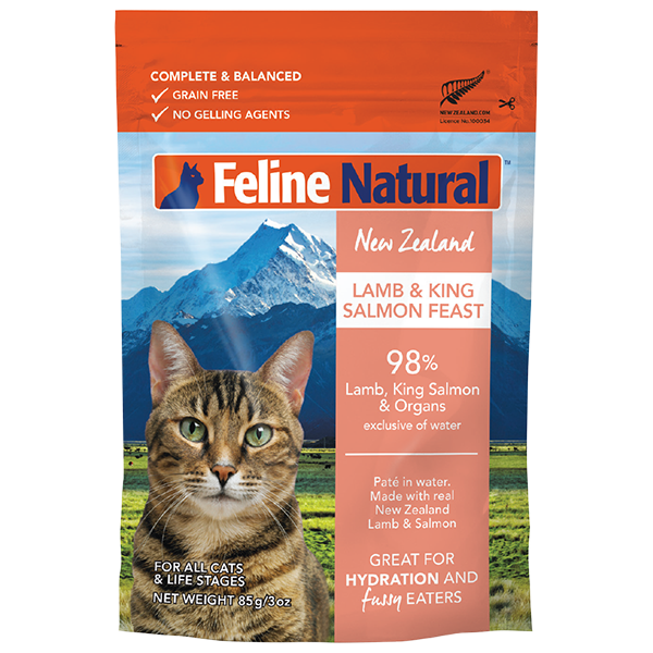 Made in New Zealand with grass-fed, free-range Lamb and sustainably caught King Salmon, this Lamb & King Salmon diet provides the rich proteins and Omega 3 fatty acids to assist a cat's natural anti-inflammatory responses. Also supports healthy skin, coat, and joints.