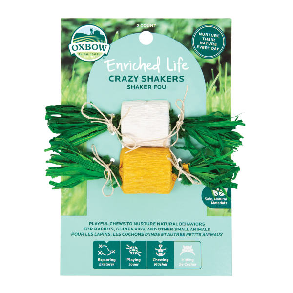 Enriching your pet's daily life starts with supporting natural behaviors such as exploring, playing, hiding, and chewing. Oxbow Enriched Life is designed with these natural behaviors in mind and is constructed from 100% pet-safe materials, allowing you to nurture your pet's mind and body is safe and fun ways every day. The Crazy Shakers are made with a variety of materials perfect for chewing, are great for tossing & rolling, and makes noise when shaken.