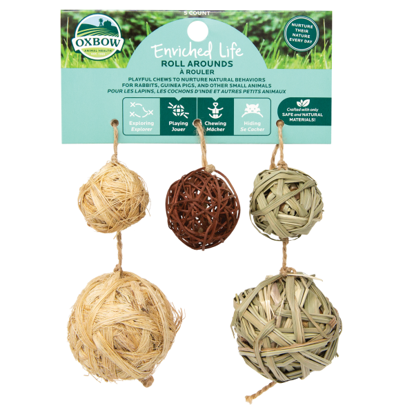 Enriching your pet's daily life starts with supporting natural behaviors such as exploring, playing, hiding, and chewing. Oxbow Enriched Life is designed with these natural behaviors in mind and is constructed from 100% pet-safe materials, allowing you to nurture your pet's mind and body is safe and fun ways every day. The Roll Arounds support your pet's natural chewing and playing behaviors and provides fun, while preventing boredom throughout the day.