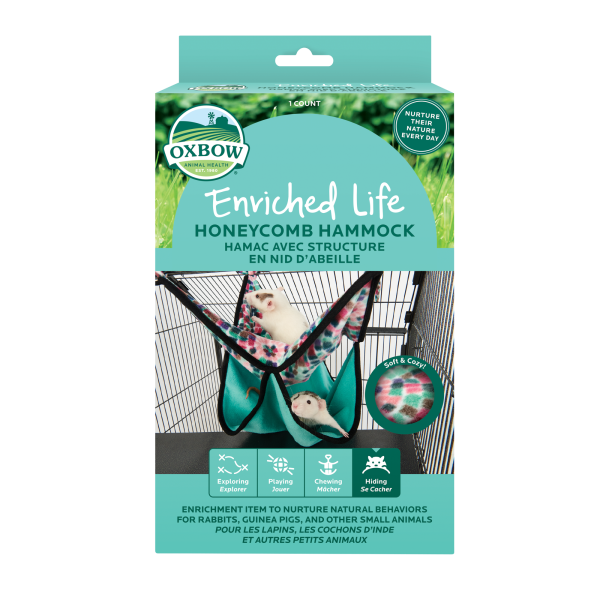 The Oxbow Enriched Life Honeycomb Hammock has multiple sleeping spots for your pets to safely rest & relax. This soft & comfortable material is machine washable and easily & securely attaches to the habitat. Support your pet's instinctual hiding behaviors in the coziest of ways.