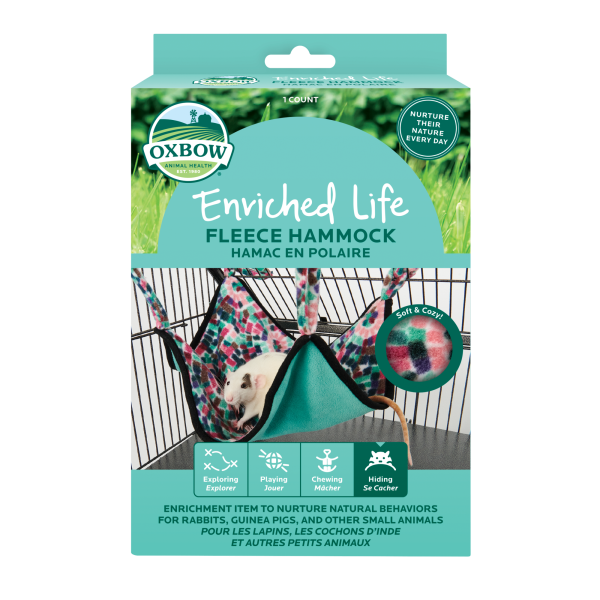 The Oxbow Enriched Life Fleece Hammock is a super soft & comfortable spot for your pets to safely rest & relax. This material is machine washable and easily & securely attaches to the habitat. Support your pet's instinctual hiding behaviors in the coziest of ways.