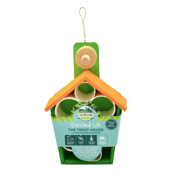 Enriching your pet's daily life starts with supporting natural behaviors such as exploring, playing, hiding, and chewing. Oxbow Enriched Life is designed with these natural behaviors in mind and is constructed from 100% pet-safe materials, allowing you to nurture your pet's mind and body in safe and fun ways every day. The Treat House is great for hiding food & treats and easily attaches to the habitat. Crafted with only safe and natural materials, it encourages mental and physical enrichment.