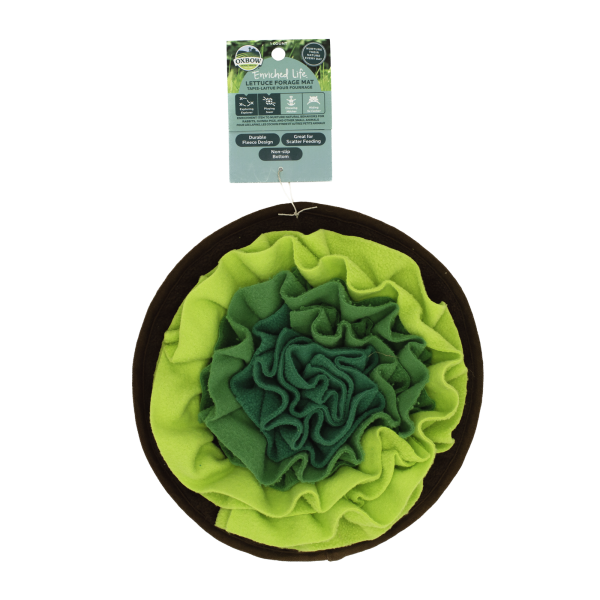 Enriching your pet's daily life starts with supporting natural behaviors such as exploring, playing, hiding, and chewing. Oxbow Enriched Life is designed with these natural behaviors in mind and is constructed from 100% pet-safe materials, allowing you to nurture your pet's mind and body in safe and fun ways every day. The Oxbow Lettuce Forage Mat is a fun, beneficial way to encourage foraging. This fun, durable fleece design features a non-slip bottom and is great for scatter feeding.