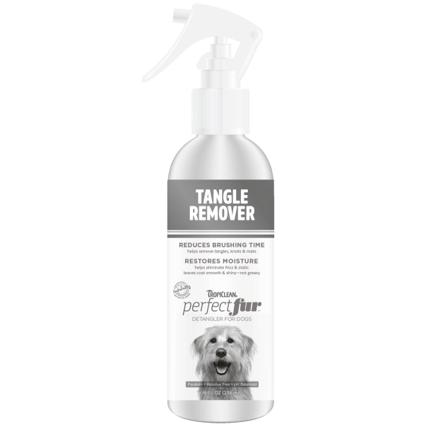 TropiClean Perfect Fur Tangle Remover Spray quickly coats tight tangles and gnarly knots for gentle brushing. The no-rinse formula helps restore and retain moisture while helping make frizz and static obedient and well-behaved.