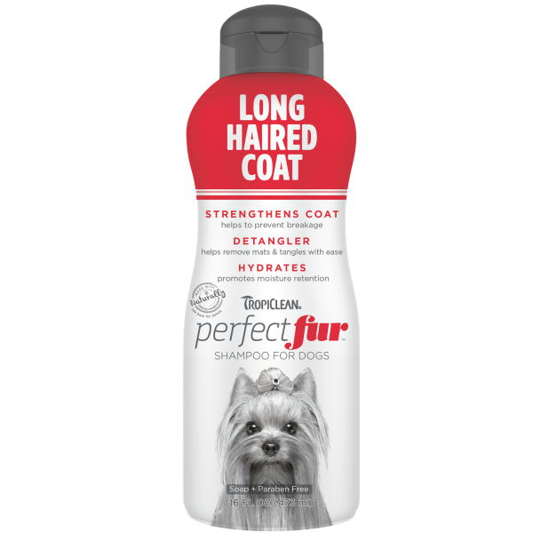 TropiClean Perfect Fur Long Haired Coat Shampoo reduces strengthens coat, detangles, and hydrates. Perfect Fur Shampoo contains no soap, paraben or dyes and has a sweet citrus fragrance. It is specially formulated for the fabulous and flowing hair of Lhasa Apsos, Yorkshire Terriers, Maltese, Shih Tzu, and other breeds with long coats.