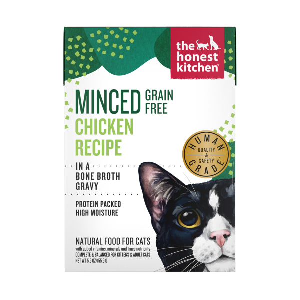 This box contains delicious, chunky, minced cage free chicken simmered in savory gravy. Made with only 100% human grade ingredients, this delicious recipe for chicken-in-gravy-loving cats checks all your quality and nutrition boxes, and all your cat's taste and texture boxes (and we know how much cats love boxes!).