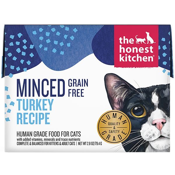 This box contains delicious, chunky, minced cage free turkey simmered in savory gravy. Made with only 100% human grade ingredients, this delicious recipe for turkey-in-gravy-loving cats checks all your human grade, quality & nutrition boxes, and all your cat's taste and texture boxes (and we know how much cats love boxes!).