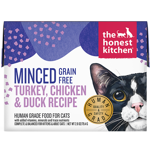 This box contains delicious, chunky, minced cage free turkey, chicken, and duck simmered in savory gravy. This healthy wet food is made with 100% human grade ingredients and is free of fillers. Meaning it checks all your human grade, quality & nutrition boxes, and it checks all your cat's taste and texture boxes (and we know how much cats love boxes!).