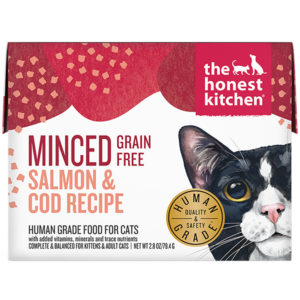 This box contains delicious, chunky, minced wild caught salmon and cod simmered in savory gravy. This gourmet fish in gravy recipe is made with 100% human grade ingredients and is free of fillers. Meaning it checks all your quality & nutrition boxes, and all your cat's taste & texture boxes (and we know how much cats love boxes!)