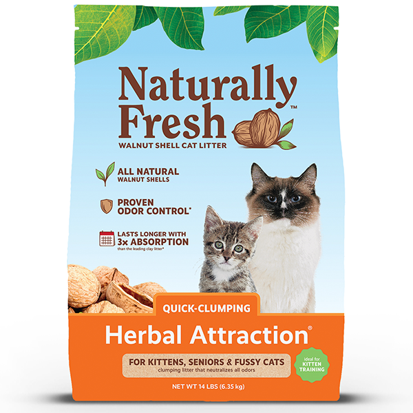 Naturally Fresh Quick-Clumping Herbal Attraction Litter is formulated with a blend of natural herbs that have shown to be effective in attracting cats to their litter boxes. It's ideal for kitten training, senior cats, or households with litter box acceptance problems. Naturally Fresh litters are made from the brous material found in walnut shells, which has the proven ability to organically absorb ammonia odors better than other leading litters. Because it's biodegradable and produces zero waste, it's as natural as it gets for your cat. Friendly for the environment, your cats, and you.