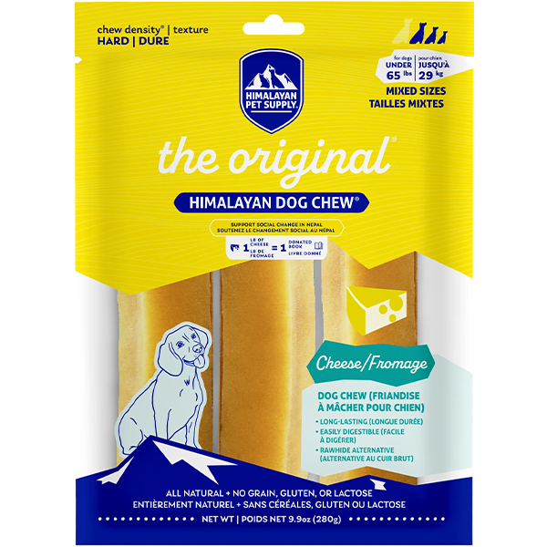 Himalayan Dog Chew is the original long-lasting, hard-smoked cheese chew your dog knows and loves. It is created from an ancient recipe and made using traditional methods, with yak and cow milk. Dogs must work the end of the treat for hours, softening it with their mouths before slowly chewing small pieces off. When you give a Himalayan Dog Chew to your dog, you know that you are providing them with high-quality chewing entertainment.