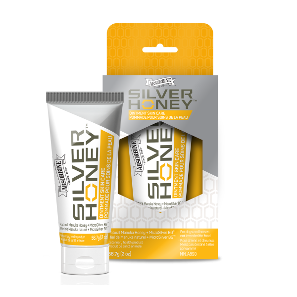 The first product to combine the natural power of Manuka Honey and MicroSilver BG, Silver Honey Wound Care Ointment is dog wound care that's tough on bacteria but gentle on skin. Proven to stop 99.9% of bacteria immediately to start healing faster, its revolutionary formula provides long-lasting protection and moisturizes the treatment area. Fast-acting antibiotic-free treatment of hot spots, dermatitis, cuts, abrasions, sores, rashes and lesions.