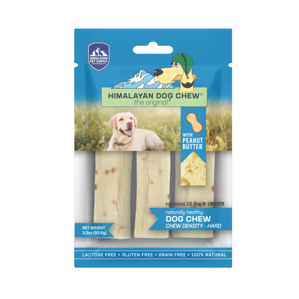 Himalayan Pet Supply, the creators of, the original smoked hard cheese chew, brings to you their most innovative creation - flavored Himalayan Dog Chew. These long-lasting, flavored hard cheese chews are made using their traditional Himalayan Cheese recipe and adding real peanuts. These 100% natural chews are locally source using limited ingredients. They are lactose, grain, and gluten-free making them easily digestible.