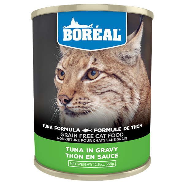 Canadian Brand. Boréal canned cat foods are 95% meat and are designed to have almost no carbohydrates to lower the risk of unwanted weight gain. This Red Tuna formula is made with dark muscle red tuna meat in gravy and like all their canned cat foods, is free of cereals, grains, artificial colour, or added salt. The Red Tuna line is not produced in Canada but in Thailand. It is produced in a facility that also produces food for humans, which are marketed all over the world.