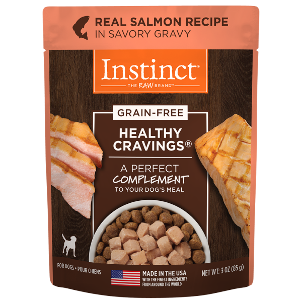 Add the taste and variety your dog craves with Instinct Healthy Cravings Grain-Free Real Salmon Recipe - the perfect complement to your dog's meal. With cuts of wild-caught salmon in a savory gravy, it's made without grain, potato, corn, wheat, soy, by-product meal, artificial colors or preservatives. Use as a topper or mixer to add the delicious taste and moisture your dog craves.