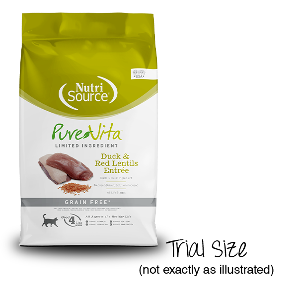 Pure Vita cat foods are specially formulated, limited ingredient, grain free diets that feature a single source animal protein making them a top choice for pets with allergies. Pure Vita Duck & Red Lentils Entrée delivers compact nutrition and includes pre and pro-biotics to help support a healthy gut. Also included are balanced Omega-3 & Omega-6 fatty acids plus Zinc to support a strong immune system, healthy skin, & coat condition, and taurine to support heart health. These small triangle shaped pieces are the purr-fect size for your kitties enjoyment.