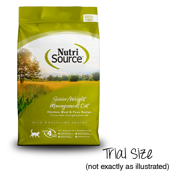 NutriSource Senior / Weight Management Chicken & Peas Cat Food with wholesome grains provides every nutrient your cat needs and has a great chicken taste that cats love. Formulated with premium ingredients, this food provides complete care for adult and senior cats. Good food feeds a pet. Great food nourishes your pet's whole body.