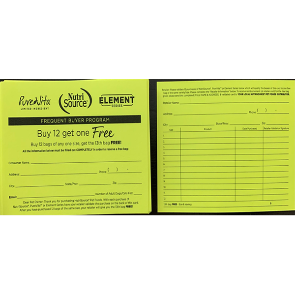 738-99996 - NutriSource Frequent Buyer Card Yellow (All Dry)