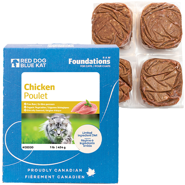 Canadian Brand. RDBK Chicken Meals for cats are made from human grade, non-medicated whole chickens. The ground bone is kept in this meal for extra calcium and healthy teeth! Chicken meals also contain chicken organs and organic vegetables. It's a great meal for underweight cats and kittens. No chicken bi-products here! That's just fowl!