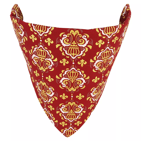 Looking for a fun and stylish way to dress up your pup? Check out the Accent Metallic Over-the-Collar 'Royal Burgundy Crowns' Dog Bandana! This bandana features a metallic print with sparkles that will make your pup shine. It slides easily over the collar for a secure and comfortable fit, plus has finished edges for durability. So whether you're dressing up your pup for a party or just want to add a little extra flair to their everyday look, the Accent Metallic Over-the-Collar Dog Bandana is the perfect choice!