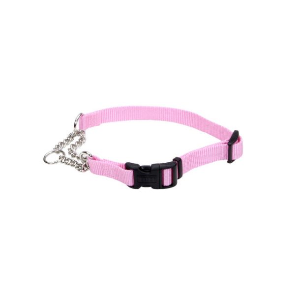 The Adjustable Check Training Collar with Buckle for Dogs features a buckle that allows you to easily put the collar on your dog or remove it. This training collar has a limited-closure chain loop combined with a nylon collar for gentle correction. The limited-closure chain loop prevents the collar from becoming too tight while the nylon reduces loss of neck hair. Gentle correction training is an excellent way to build a relationship with your dog. These collars are not for use with tie out.