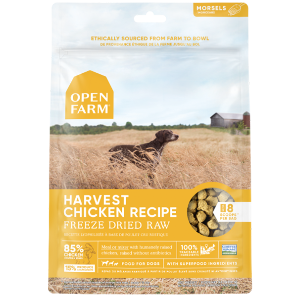 Open Farm Freeze Dried Raw Homestead Chicken is easy to serve and hard to resist. This high protein topper or complete meal is packed with humanely raised antibiotic-free raw chicken. For added nutrition Open Farm includes functional ingredients like locally sourced leafy greens, squash and pumpkin seeds, superfoods like coconut oil, and antioxidants like blueberries.