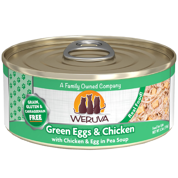 Get the cat out of the hat and into a plate full of boneless, skinless, white breast chicken loaded with the best of the best green veggies in gravy. Your cat will enjoy those garden greens! And let's not forget those bits of egg, perfect for the morning omelet! Weruva Green Eggs and Chicken is made with magic in every bite with chicken free of added antibiotics, hormones and also cage free.