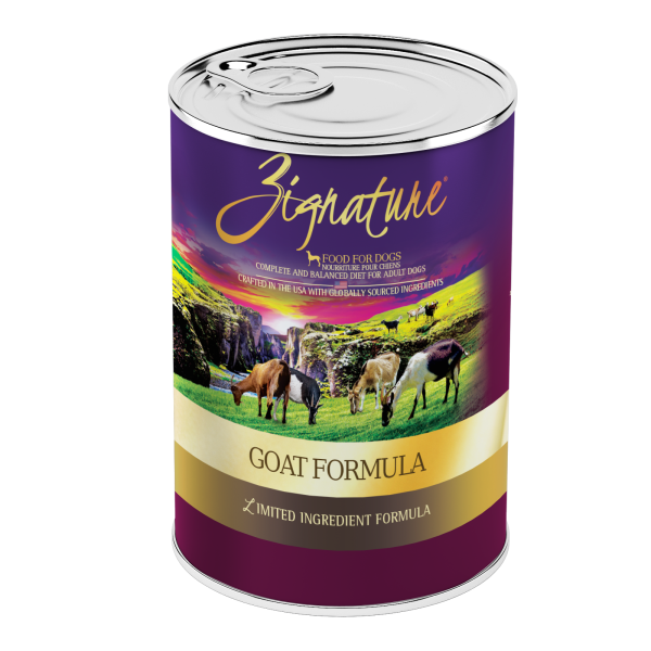 Zignature Canned Goat Formula is made with low in fat, high-quality goat as the number one ingredient. It contains 78% moisture to keep your pup hydrated and is topped off with nutritious and delicious ingredients such as peas and chickpeas to round out a healthy and well-balanced diet.