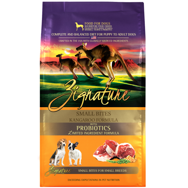 For our smaller pups, try Zignature Small Bites! Zignature Small Bites follows their same limited-ingredient, meat-first philosophy - just in smaller sized bites. Zignature Small Bites Kangaroo Formula is packed with lean kangaroo protein which is rich in nutrients and has twice the amount of Vitamin B12 than any other meat protein. Zignature tops that off with other healthy and wholesome ingredients to provide your pup with a tasty and well-balanced diet.