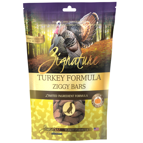 Zignature Turkey Ziggy Bars make training time more fun! These tasty treats are formulated with the same limited ingredient philosophy as their dry and canned foods and include healthy, wholesome ingredients like pumpkin to make treat time much more enjoyable for you and your furry friend!