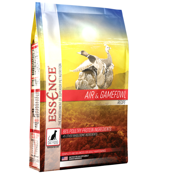 Essence Air & Gamefowl Recipe for cats provides a complete range of protein and comes packed with essential vitamins and minerals. The first four ingredients are guinea fowl, duck, turkey, and chicken. Essence balances the recipe with healthy vegetables, such as pumpkin and dandelion greens, which provide additional healthy nutrients and dietary fiber. This ensures you cats are at their healthy best while eating truly great tasting food. Made with healthy and wholesome ingredients, Essence Air & Gamefowl Recipe is truly the embodiment of superior nutrition.