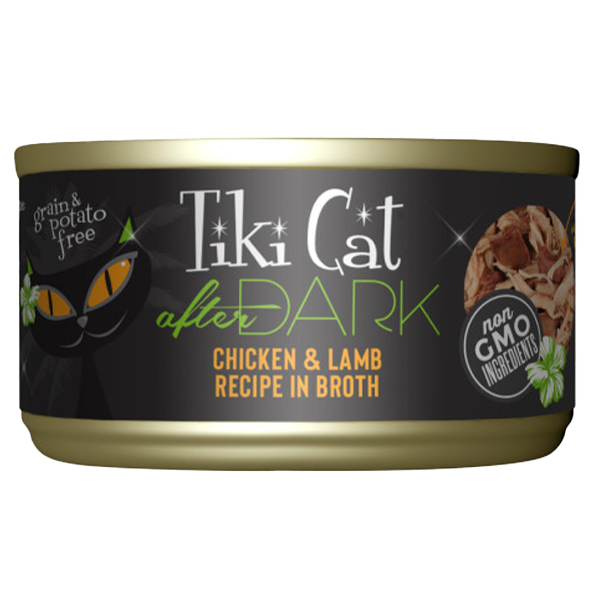 Who says nothing good happens after dark? Give cats the real meat they crave with shredded chicken, organ meat and tender lamb in a savory broth. Chicken liver, gizzards and heart add irresistible flavor and beneficial nutrients. Complete and balanced for all life stages, the high moisture content gives cats the supplemental water they need. Tiki Cat After Dark is high in protein with no grains or carbs, because cats are carnivores. Day or night, it's a feast for the feline carnivore.