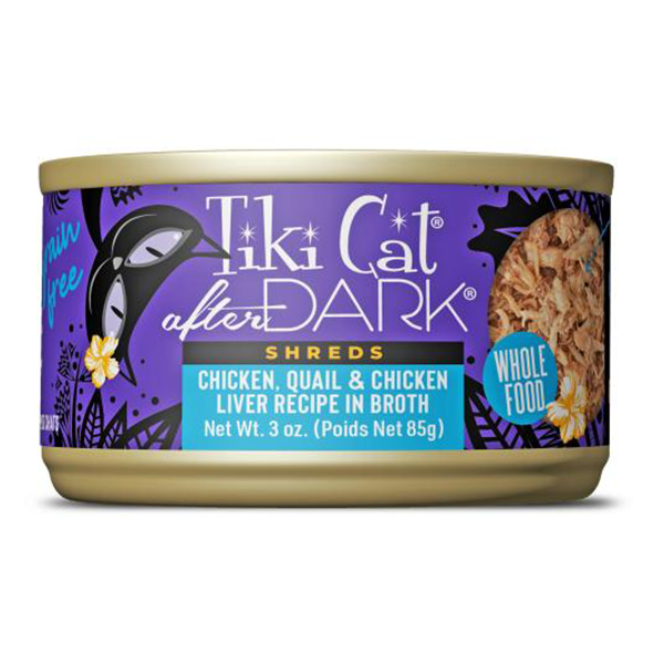 Variety cats want, with the Nutrition they need. Cats are obligate carnivores. Your cat shares the same carnivorous appetite of her wild ancestors. Feed her what she craves with After Dark Shreds Chicken, Quail & Chicken Liver Recipe that is protein-rich, with a high moisture content that closely mimics a natural prey diet. Made with nutrient-dense organ meat and delicious shreds of real chicken and quail. Grain free with no artificial preservatives.