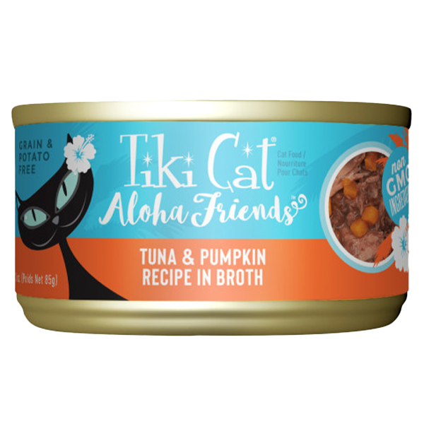 Tiki Cat Aloha Friends feature real, recognizable ingredients that are intense on the senses and gentle on the stomach. Tuna with Pumpkin is complete and balance for all life stages. Real, wild-caught tuna is the first ingredient combined with small chunks of delicious pumpkin in a savory tuna broth. Pumpkin offers a gentle source of fiber. Hand-packed and grain free, Tiki Cat Aloha Friends provides high moisture to give cats the supplemental water they need.